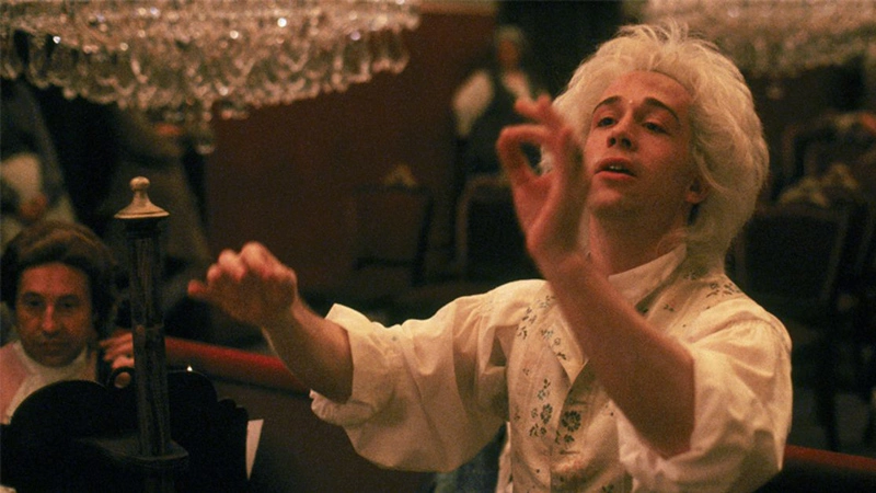 영화는 훌륭하게 잘 쓰여지고 연기된 장면으로 구성되어 있습니다. 장면은 매우 조심스럽게 구성되고 기쁨으로 펼쳐져 완벽한 단어 구성으로 재생됩니다. 그들 대부분은 이 영화의 기반이 되는 Peter Shaffer의 숙연한 연극을 본 사람들에게는 낯설 것입니다. Shaffer와 Forman은 재료에 빛, 생명, 웃음을 가져다 주며 우아하고 쉽게 연주합니다. 그것은 연극보다 더 인간적입니다. 등장인물은 사람이지, 의미의 두근거림이 아니다. 그것은 모차르트의 삶에서 그의 아버지, 그의 아내, 살리에리와의 관계에 중점을 둡니다. 아버지는 결코 기뻐할 수 없으며, 이는 모차르트의 모든 성공에 영향을 미치는 저류를 만듭니다. 유쾌하고 통통한 엘리자베스 베리지가 연기한 아내, 유쾌한 여자와 사랑스러운 파트너의 자질을 한 사람에게 포함합니다. 그녀는 하루 종일 침대에 누워있는 것을 좋아하지만 모차르트에게 훌륭하고 건전한 조언을 제공하며 그 자체로 강력한 사람입니다. 후원자, 특히 오스트리아-헝가리 제국의 황제 요제프 2세는 감정가이자 딜레탕트로서 모차르트의 새로운 음악을 받아들이는 데는 느리지만 모차르트가 그것을 옹호하는 대담함에 매료됩니다. 그리고 자신이 얼마나 부족한지, 그리고 모차르트가 얼마나 위대한지 누구보다 더 잘 이해하는 것이 특별한 고문을 받는 척박한 궁정 작곡가 Salieri(F. Murray Abraham)가 있습니다.